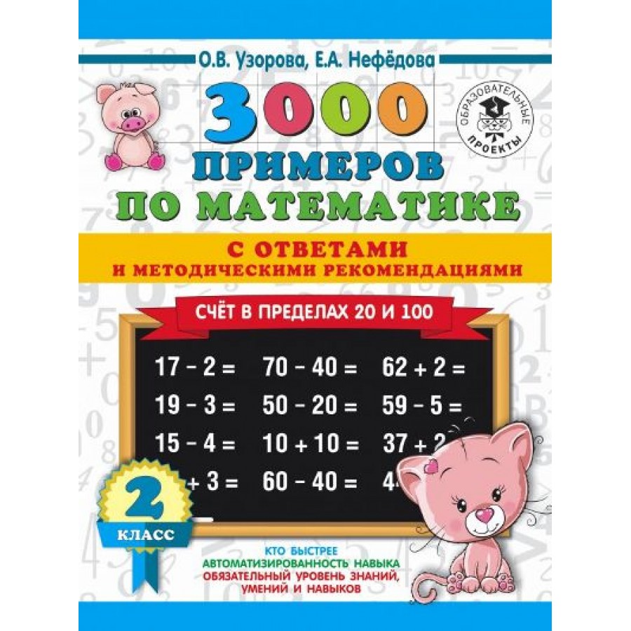 3000 примеров по математике с ответами и методическими рекомендациями. 2 класс. Счет в пределах 20 и 100. Тренажер. Узорова О.В. АСТ
