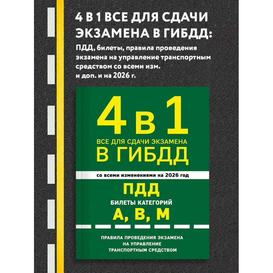 4 в 1. Все для сдачи экзамена в ГИБДД, ПДД, билеты, правила проведения экзамена на управление транспортным средством со всеми изменениями на 2026.