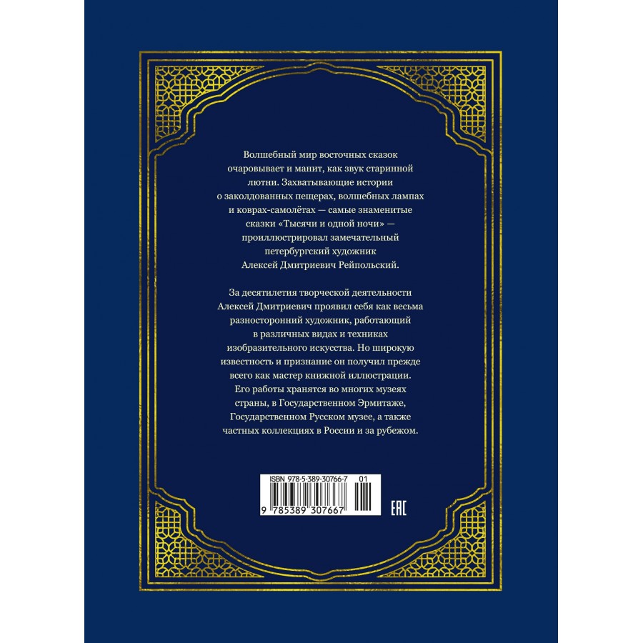 В настоящее издание вошли самые знаменитые сказки «Тысячи и одной ночи», иллюстрации к которым создал замечательный петербургский художник Алексей Дмитриевич Рейпольский. За десятилетия творческой деятельности Алексей Дмитриевич проявил себя как весьма разносторонний художник, работающий в различных видах и техниках изобразительного искусства. Но широкую известность и признание он получил прежде всего как мастер книжной иллюстрации. Его работы хранятся во многих музеях страны, в Государственном Эрмитаже, Государственном Русском музее, а также частных коллекциях в России и за рубежом.