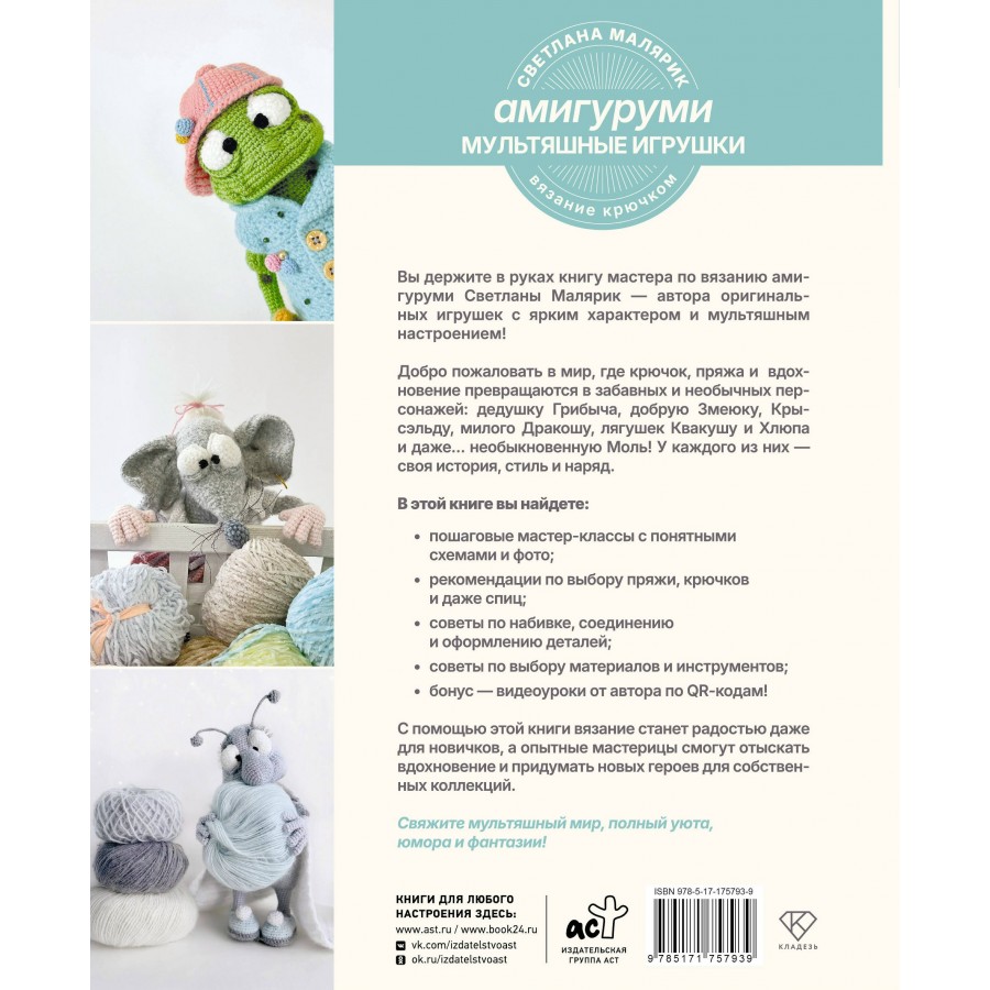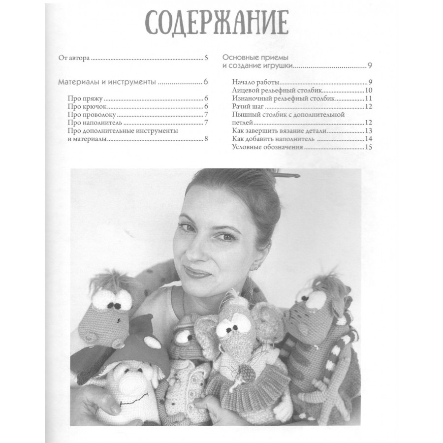 В книге представлено 6 мастер-классов, по которым можно связать крючком забавных и необычных персонажей: дедушку Грибыча, добрую Змеюку, очаровательную Крысэльду, милого Дракошу, лягушек Квакушу и мистера Хлюпа, а также необыкновенную Моль. Все мастер-классы сопровождают пошаговые фото, описания по рядам, советы по выбору инструментов и материалов, набивке, соединению и оформлению деталей. Также в книге собраны основные приемы вязания и видеоуроки от автора, доступные по QR-кодам.