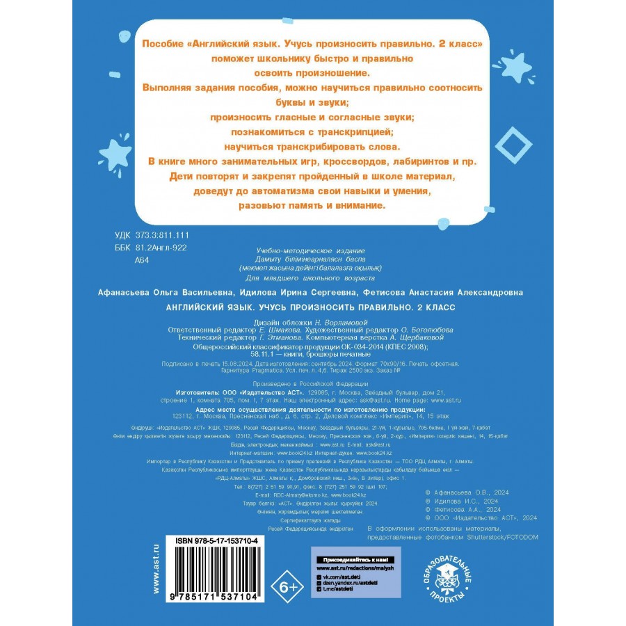 Английский язык. Учусь произносить правильно. 2 класс. 2024. Тренажер. Афанасьева О.В. АСТ