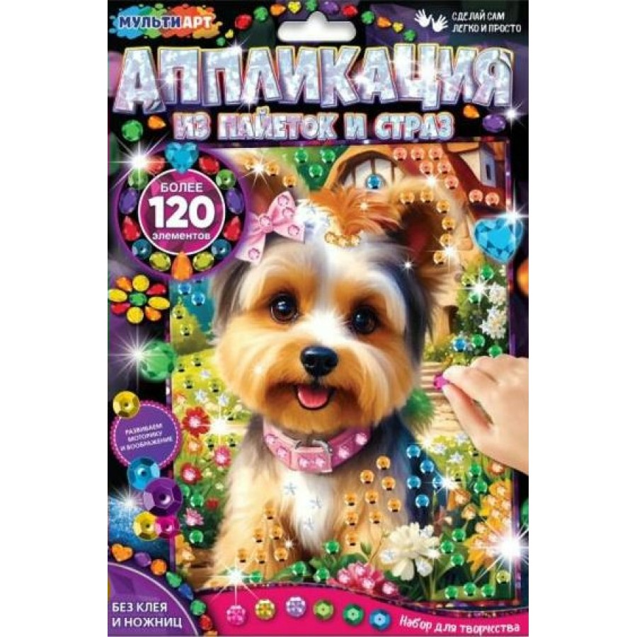 Набор для творчества – Аппликация из пайеток и страз «Йорк» ТМ «Мульти Арт» - отличный подарок для ребёнка, который будет способствовать развитию его творческих способностей.