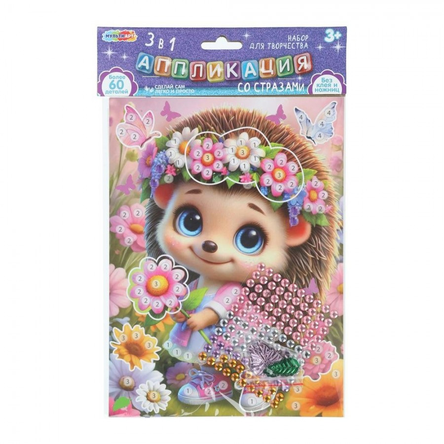 Аппликация из страз 3 в 1 Ёжик HEDAPP-130404 МультиАрт