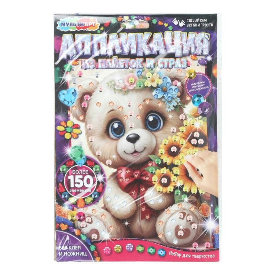 Набор для творчества — аппликация со стразами и пайетками «Милый медвежонок» ТМ «Мульти Арт» — отличный подарок для вашего ребёнка, который будет способствовать развитию его творческих способностей.