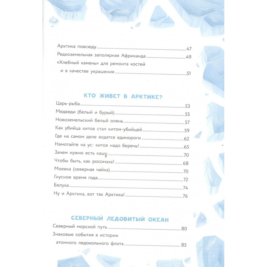 Вместе с этой неразлучной тройкой читателей ждёт захватывающее приключение: они познакомятся с белыми медведями и моржами, прокатятся на мощных ледоколах Северного морского флота и узнают, какие несметные сокровища скрыты под вечной мерзлотой. Эта книга — увлекательная энциклопедия в формате истории, которая откроет детям удивительный мир Арктики, расскажет о её уникальной природе, смелых людях и важнейших богатствах, которые нужно беречь.
