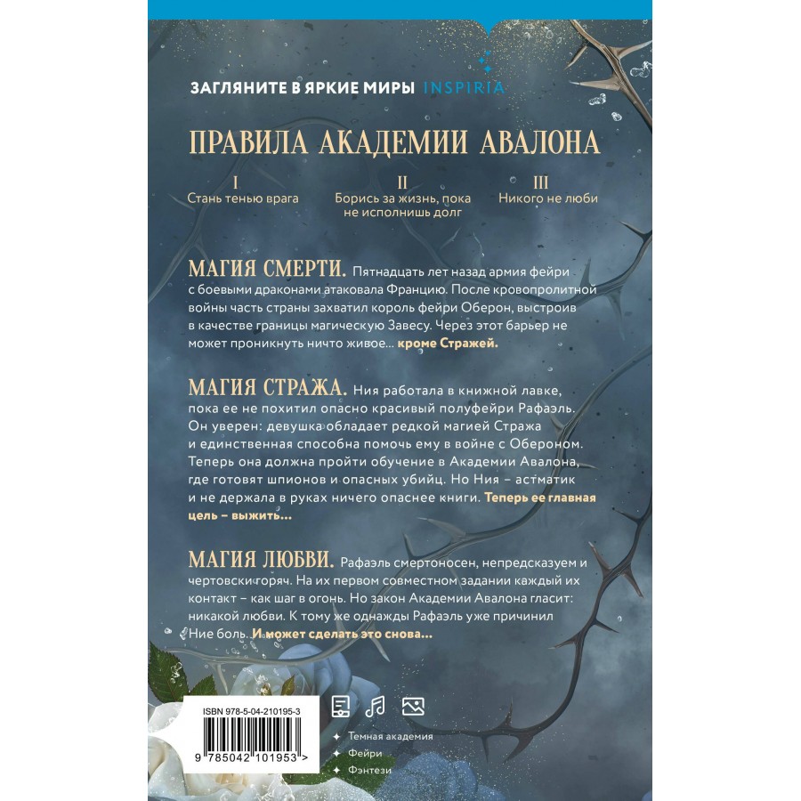 Пятнадцать лет назад армия фейри с боевыми драконами атаковала Францию. После кровопролитной войны часть страны захватил король фейри Оберон, выстроив в качестве границы магическую Завесу. Через этот барьер не может проникнуть ничто живое... кроме Стражей. Ния работала в книжной лавке, пока ее не похитил опасно красивый полуфейри Рафаэль. Он уверен: девушка обладает редкой магией Стража и единственная способна помочь ему в войне с Обероном. Теперь она должна пройти обучение в Академии Авалона, где готовят шпионов и опасных убийц. Но Ния – астматик и не держала в руках ничего опаснее книги. Теперь ее главная цель – выжить... Рафаэль смертоносен, непредсказуем и чертовски горяч. На их первом совместном задании каждый их контакт – как шаг в огонь. Но закон академии Авалона гласит: никакой любви. К тому же однажды Рафаэль уже причинил Ние боль. И может сделать это снова...