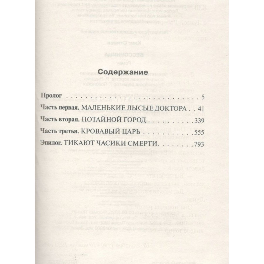 Бессонница рано или поздно проходит — так подсказывает житейский опыт. Но что делать, если она растягивается на многие месяцы? Если бессонные ночи наполнены кровавыми видениями, которые подозрительно напоминают реальность? Ральф Робертс не знает ответов на эти вопросы, наверняка ему известно лишь одно: еще немного — и он сойдет с ума...