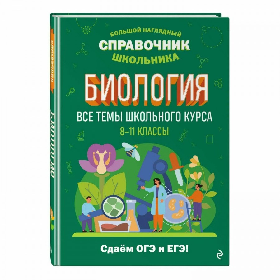 В справочнике представлены основные разделы школьного курса биологии: «Ботаника», «Зоология», «Анатомия», «Общая биология». Материал сгруппирован по коротким рубрикам, таблицам и схемам. В книге множество иллюстраций, важная информация подаётся через вопросно-ответную форму с элементами комиксов, что способствует её лучшему усвоению. Есть задания с ответами и подробными решениями. Книга будет полезна ученикам средней и старшей школы при подготовке к урокам, ОГЭ, ЕГЭ и другим формам контроля, а учителям поможет составить план занятий.