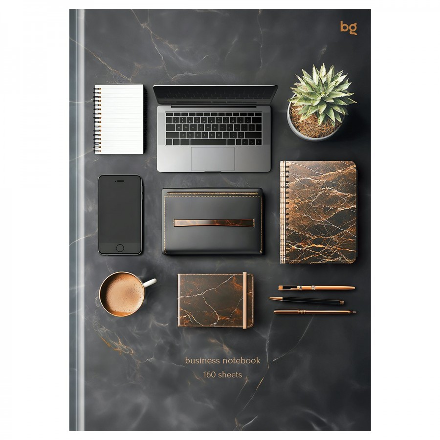 Блокнот 160 листов А5 клетка, твердая обложка Бизнес Рабочий стол глянцевая ламинация 381643 BG ББ5т160_лг 09862