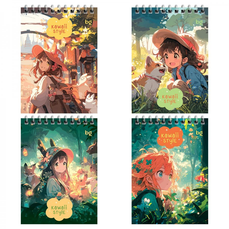 Блокнот BG «Аниме» имеет формат A6 и размер 100*145 мм. Внутренний блок из 40 листов офсетной бумаги плотностью 60 г/м2. Линовка ? в клетку. Тип скрепления ? евроспираль. Обложка изготовлена из мелованного картона. Блокн... Читать далее...