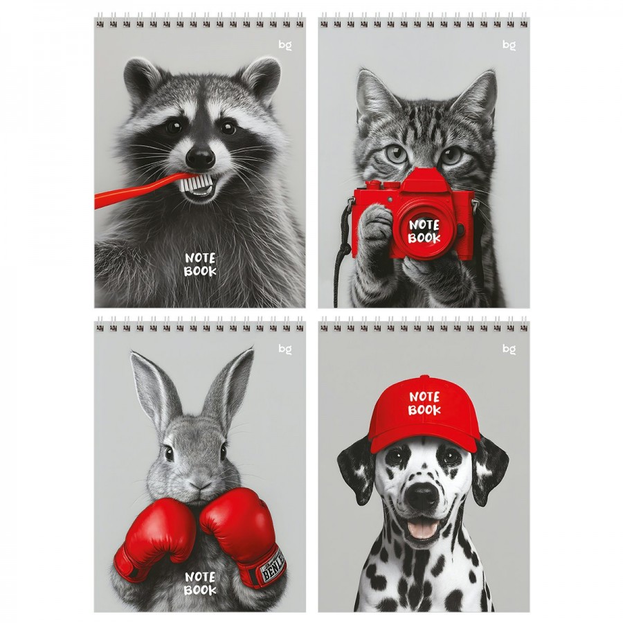 Блокнот 60 листов А5 клетка, гребень Pet and red твердая подложка 385097 BG 12/48 Б5гр60 06694