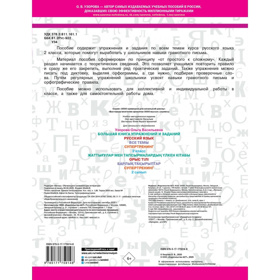 Большая книга упражнений и заданий. Русский язык. Все темы. Супертренинг. 2 класс. 2025. Тренажер. Узорова О.В. АСТ