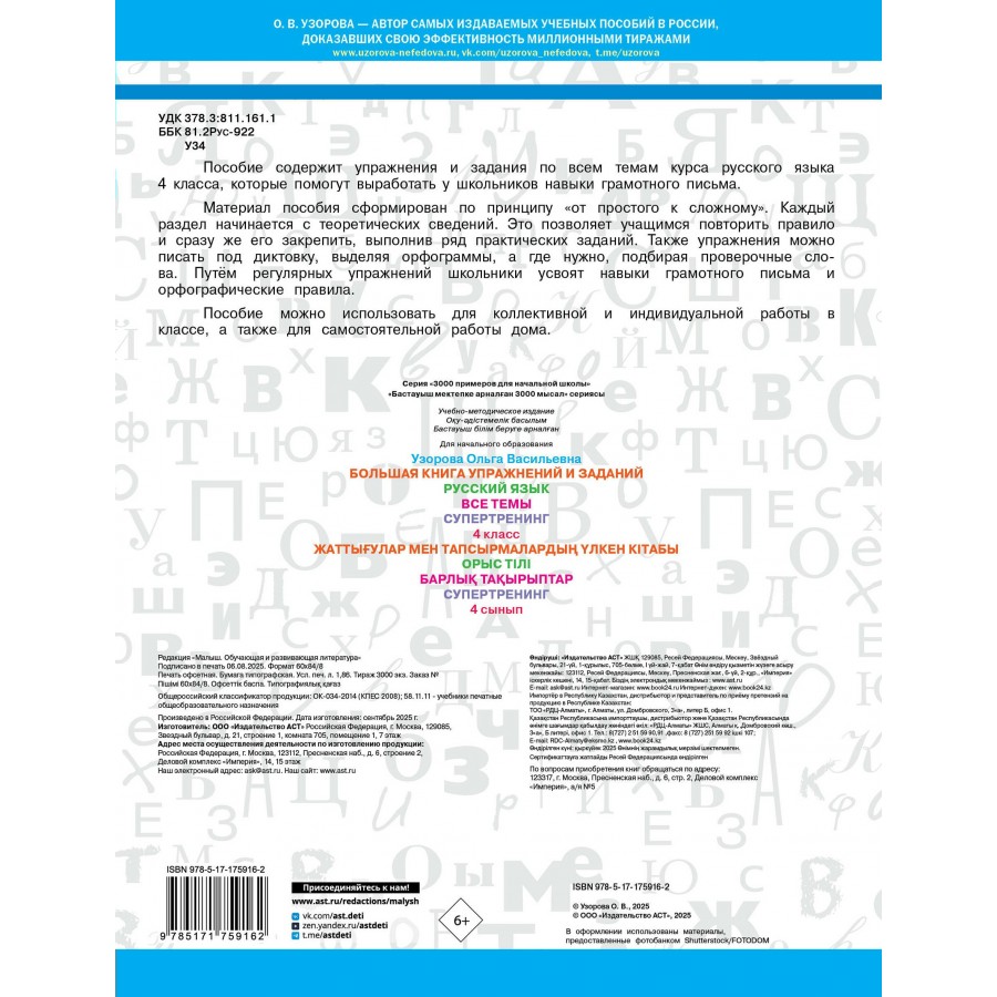 Большая книга упражнений и заданий. Русский язык. Все темы. Супертренинг. 4 класс. 2025. Тренажер. Узорова О.В. АСТ