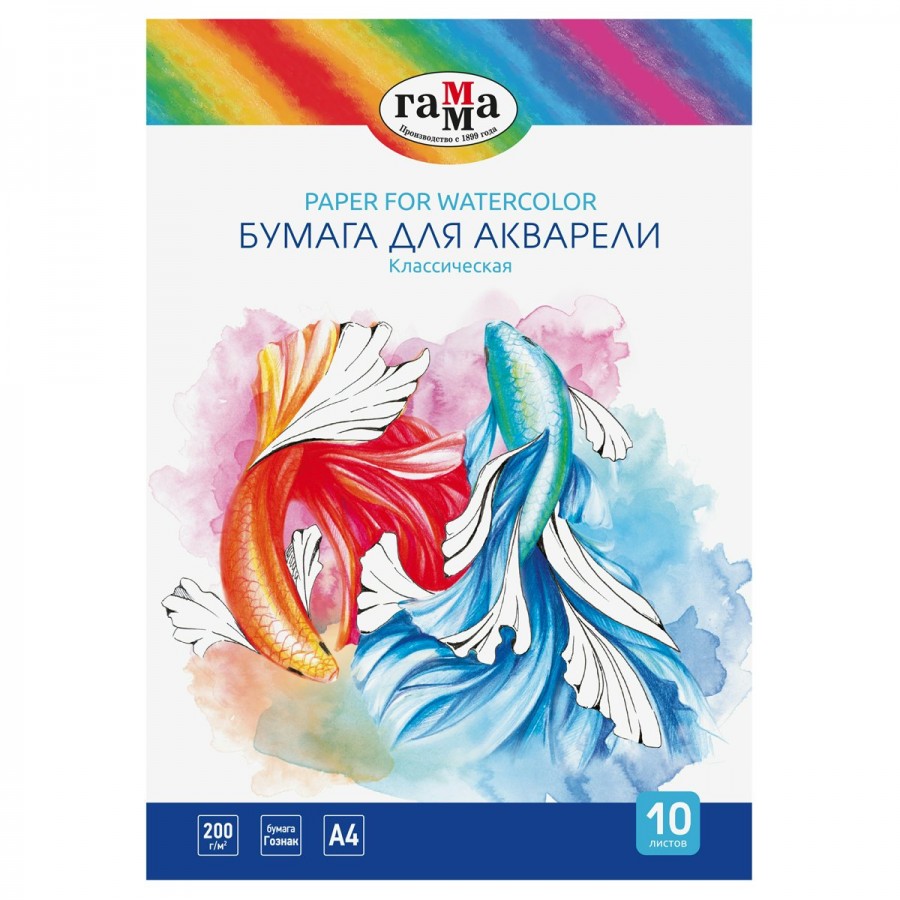 Бумага для акварели А4 10 листов Классическая 200г/м2 180523_А420010 Гамма 361341