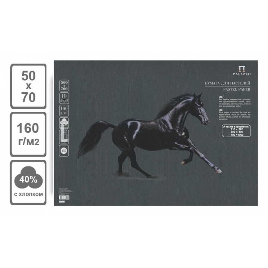 Бумага для пастелей "Палаццо", цвет "Graphite", с тиснением "Холст" с содержанием хлопка 40 %, плотность 160 г/м2