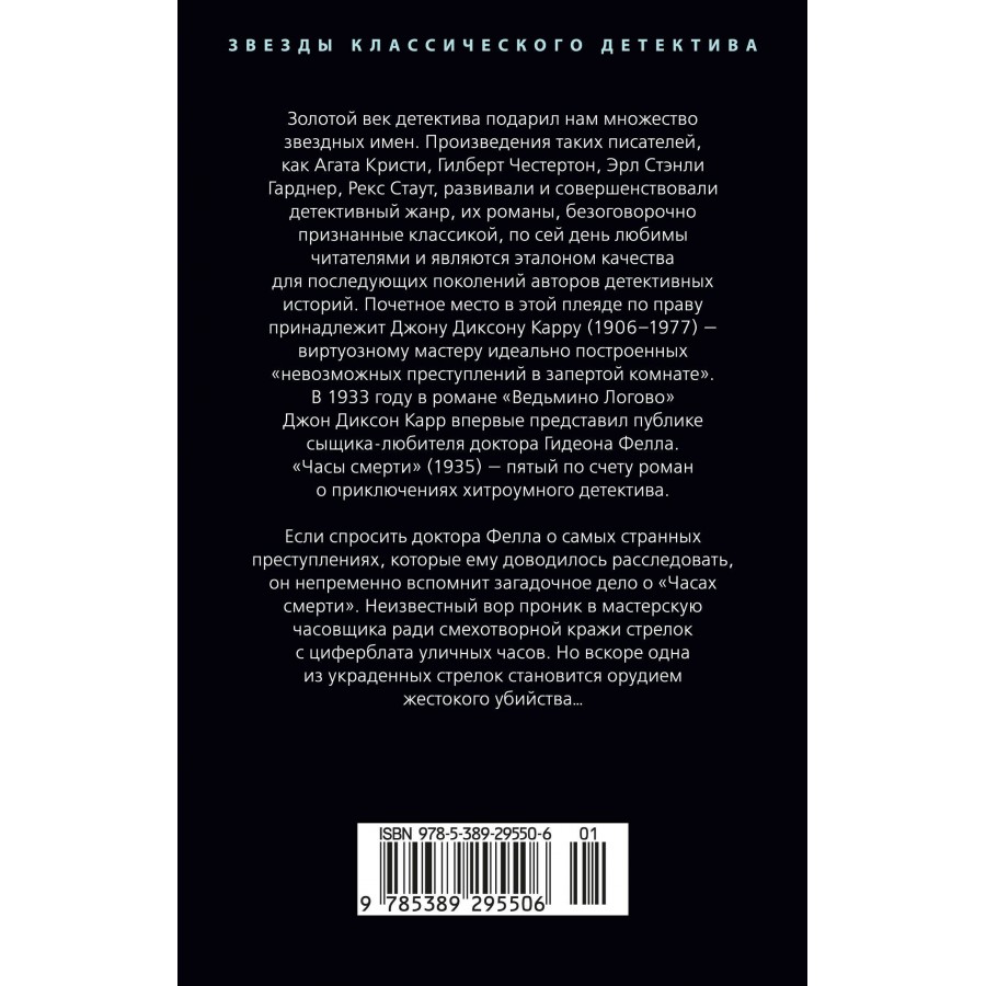 В 1933 году в романе «Ведьмино Логово» Джон Диксон Карр впервые представил публике сыщика-любителя доктора Гидеона Фелла, «Часы смерти» (1935) — пятый по счету роман о приключениях хитроумного детектива.