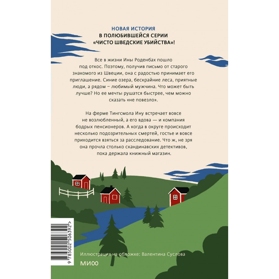 На ферме Тингсмола Ину встречает вовсе не возлюбленный, а его вдова — и компания бодрых пенсионеров. А когда в округе происходит несколько подозрительных смертей, гостье и вовсе приходится взяться за расследование. Что ж, не зря она прочла столько скандинавских детективов, пока держала книжный магазин.