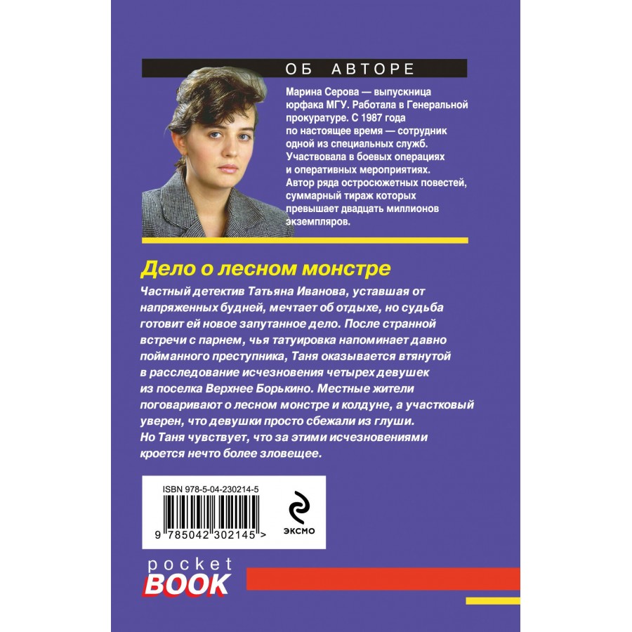 Марина Серова — феномен современного отечественного детективного жанра. Выпускница юрфака МГУ, работала в Генеральной прокуратуре. Участвовала в оперативных мероприятиях. Автор ряда остросюжетных повестей, суммарный тираж которых превышает двадцать миллионов экземпляров.