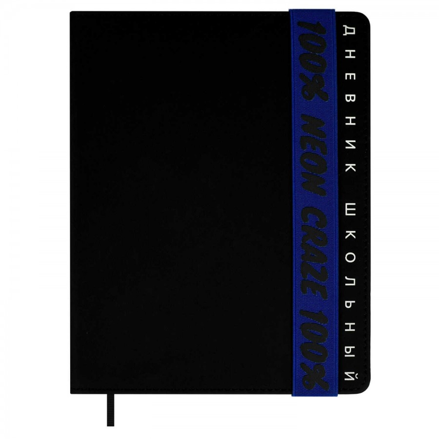 Дневник школьный арт. 68787 / 15 НЕОН СИНИЙ (кожзам: А5+; твёрдый переплёт, материал обложки: искусственная кожа "Хайпо"; декор: тиснение фольгой; способ крепления блока: ниткошвейный; вн. блок: 48 л., белый офсет 80 г/м2, печать в одну краску, справочный материал: универсальная шпаргалка; закладка: одно ляссе; форзац: печать в одну краску; особенности: застёжка-резинка с шелкографией в одну краску; индивидуальная упаковка: ПЭТ-пакет)