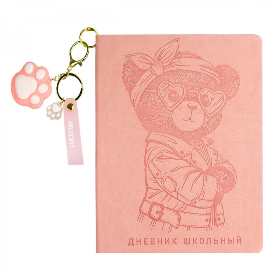Дневник универсальный 48 листов А5+ 170х215 твердая обложка, кожзам виннер Мишка в плаще брелок, блинтовое тиснение, 80г/м2 68776 Феникс 15/30