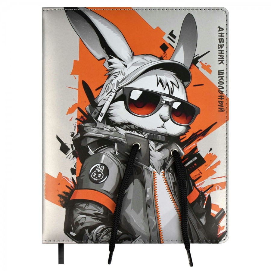 Дневник школьный арт. 68685 / 15 КРУТОЙ КРОЛИК (кожзам: А5+; твёрдый переплёт с поролоном, материал обложки: искусственная кожа "Софт-тач металлик"; декор: печать полноцветная, шнуровка в люверсах декоративная; способ крепления блока: ниткошвейный; вн. блок: 48 л., белый офсет 80 г/м2, печать в одну краску, справочный материал: универсальная шпаргалка; закладка: одно ляссе; форзац: печать в одну краску; индивидуальная упаковка: ПЭТ-пакет)