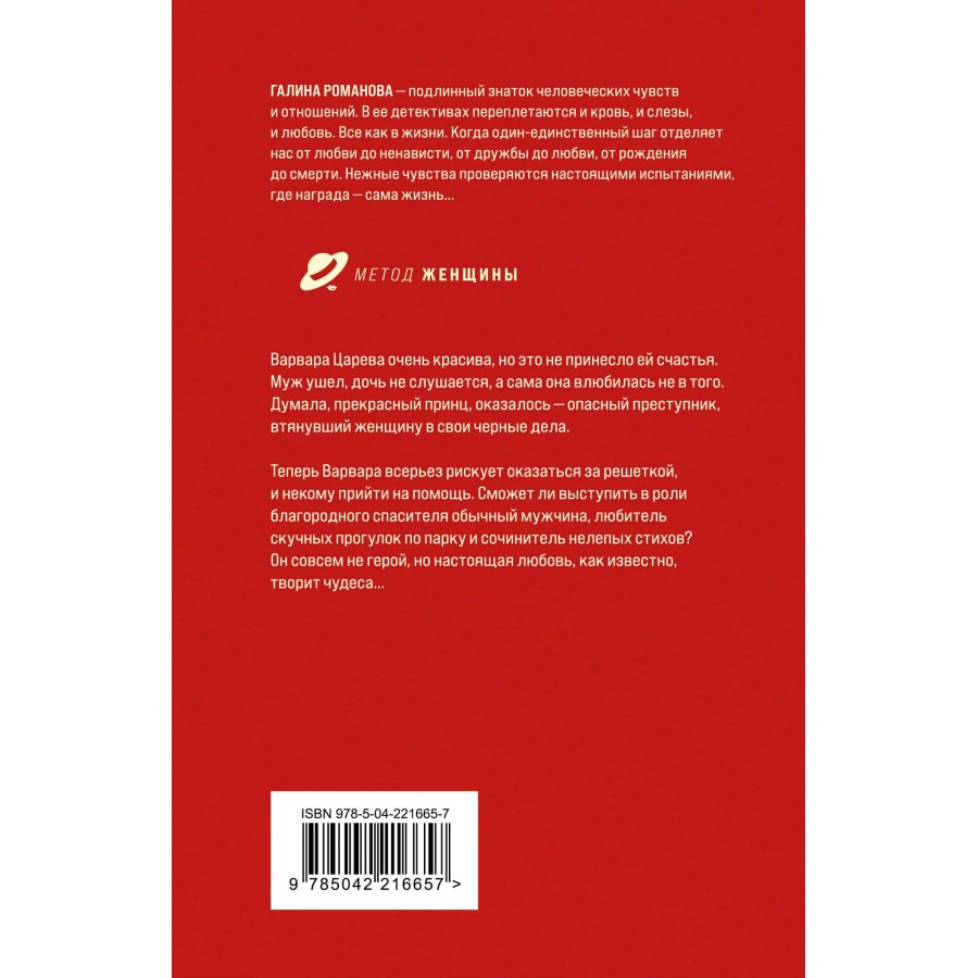 Варвара Царева очень красива, но это не принесло ей счастья. Муж ушел, дочь не слушается, а сама она влюбилась не в того. Думала, прекрасный принц, оказалось — опасный преступник, втянувший женщину в свои черные дела. Теперь Варвара всерьез рискует оказаться за решеткой, и некому прийти на помощь. Сможет ли выступить в роли благородного спасителя обычный мужчина, любитель скучных прогулок по парку и сочинитель нелепых стихов? Он совсем не герой, но настоящая любовь, как известно, творит чудеса…
