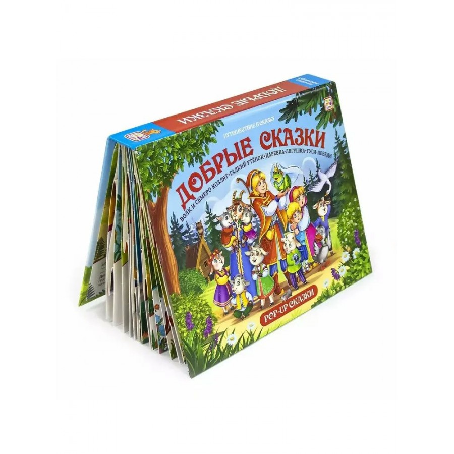 Добрые сказки" — это сборник любимых детских сказок в формате книги-панорамки с объемными иллюстрациями. В сборник входят любимые сказки малышей: "Волк и семеро козлят", "Гадкий утёнок", "Царевна-лягушка", "Гуси-лебеди". Книга сделана из качественного и плотного картона, который имеет высокую прочность и влагоотталкивающие свойства. Яркая и контрастная печать делает картинки максимально насыщенными. Порадуйте своего ребёнка уже знакомыми и полюбившимися многим сказками с 3D иллюстрациями, которые удивят вашего малыша.