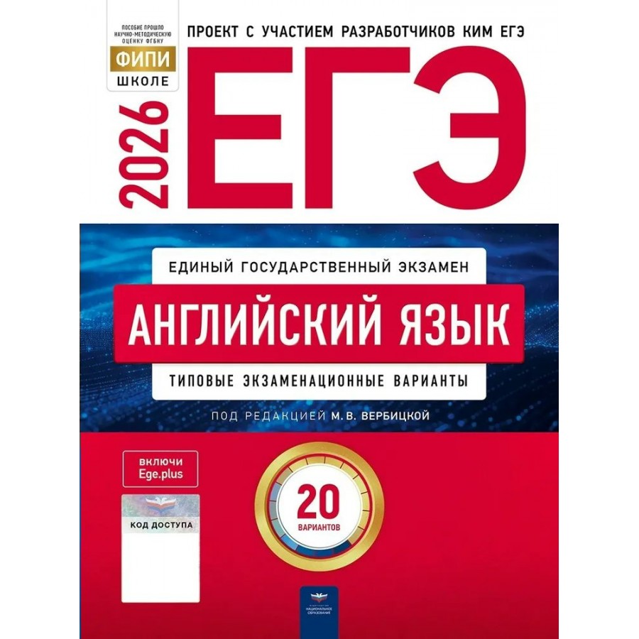 ЕГЭ 2026. Английскимй язык. Типовые экзаменационные варианты. 20 вариантов. Тесты. Вербицкая М.В. НацОбр