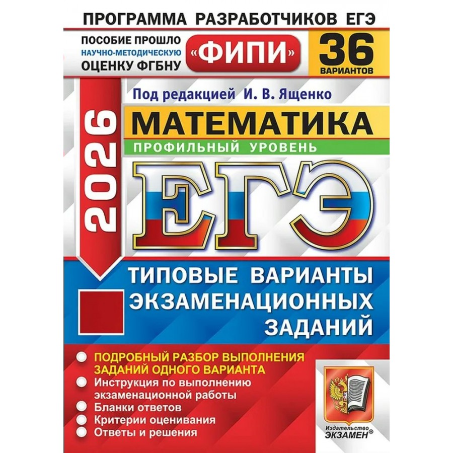 ЕГЭ 2026. Математика. Профильный уровень. Типовые варианты экзаменационных заданий. 36 вариантов. Тренажер. Ященко И.В. Экзамен