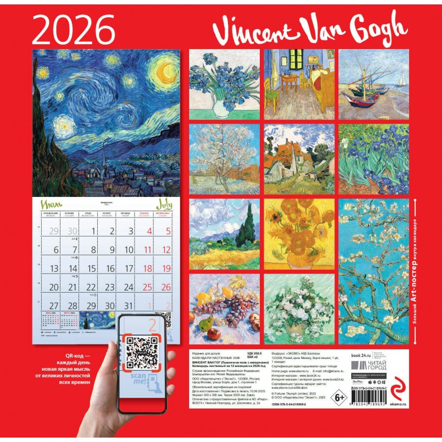 Эксмо/Календарь настенный перекидной на скрепке 2026. Винсент Ван Гог 300 х 300/ITD000000001436616/
