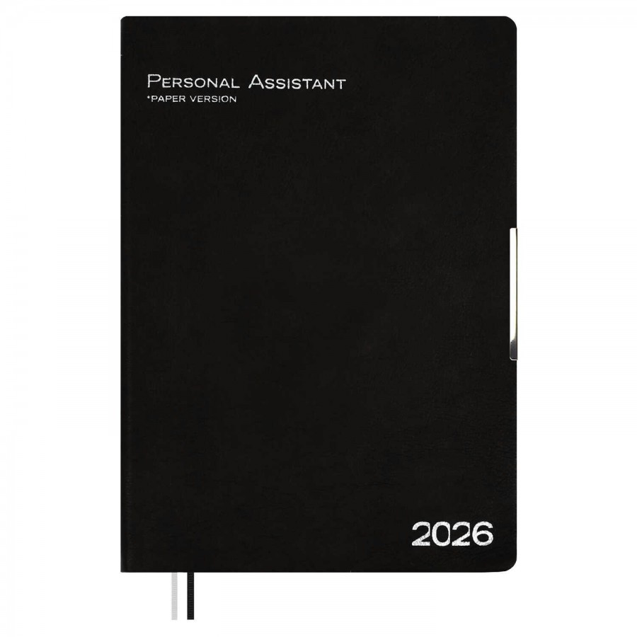 Ежедневник датированный 2026 ESCALADA, А4, 120 л., арт. 70205/ 10 ШЕВРЕТ ГЛОСС ЧЁРНЫЙ (кожзам: 210х297 мм, мягкий переплёт, запаянный край, материал обложки: искусственная кожа "Шеврет глосс"; декор: тиснение фольгой, металлический шильд по краю обложки; способ крепления блока: ниткошвейный; вн. блок: 120 л., белый офсет 80 г/м?, печать в две краски (линия), справочный материал: есть; перфорация углов блока: нет; закладка/-и: два ляссе; каптал: есть; форзац: печать пантоном; персонализация возможна: да; индивидуальная упаковка: промостикер + ПЭТ-пакет)