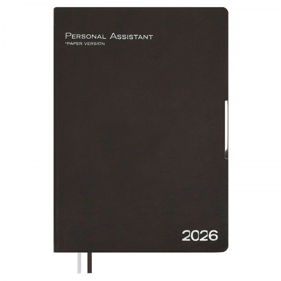 Ежедневник датированный 2026 ESCALADA, А4, 120 л., арт. 70206/ 10 ШЕВРЕТ ГЛОСС КОРИЧНЕВЫЙ (кожзам: 210х297 мм, мягкий переплёт, запаянный край, материал обложки: искусственная кожа "Шеврет глосс"; декор: тиснение фольгой, металлический шильд по краю обложки; способ крепления блока: ниткошвейный; вн. блок: 120 л., белый офсет 80 г/м?, печать в две краски (линия), справочный материал: есть; перфорация углов блока: нет; закладка/-и: два ляссе; каптал: есть; форзац: печать пантоном; персонализация возможна: да; индивидуальная упаковка: промостикер + ПЭТ-пакет)