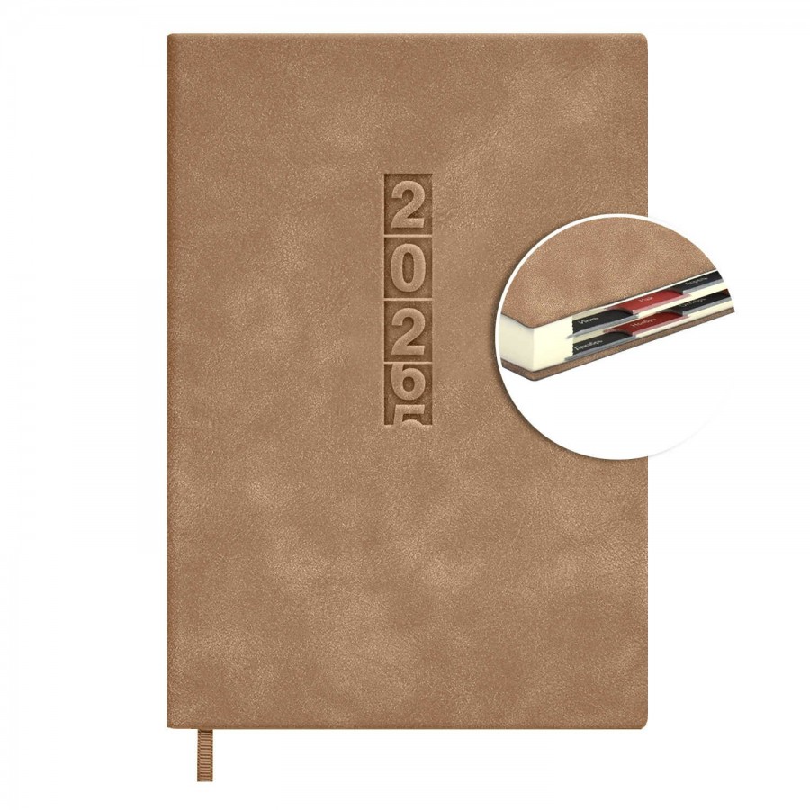 Ежедневник датированный 2026 ESCALADA, #ДУМАЙ КАК МИЛЛИАРДЕР, А5, 176 л., арт. 70270/ 15 ТИВОЛИ ГЛОСС БЕЖЕВЫЙ (кожзам: 146x211 мм, мягкий переплёт, запаянный край, материал обложки: искусственная кожа "Тиволи глосс"; декор: блинтовое тиснение; способ крепления блока: ниткошвейный; вн. блок: 176 л., кремовый офсет 70 г/м?, печать в две краски (линия), справочный материал: есть; перфорация углов блока: есть; закладка/-и: одно ляссе; каптал: есть; форзац: печать пантоном; особенности: в блоке использованы мотивирующие высказывания из книги "Думай как миллиардер", помогающие сформировать правильное отношение к финансам, профессиональной деятельности, своим способностям и к жизни в целом, вырубка блока по месяцам; персонализация возможна: да; индивидуальная упаковка: промостикер + ПЭТ-пакет)