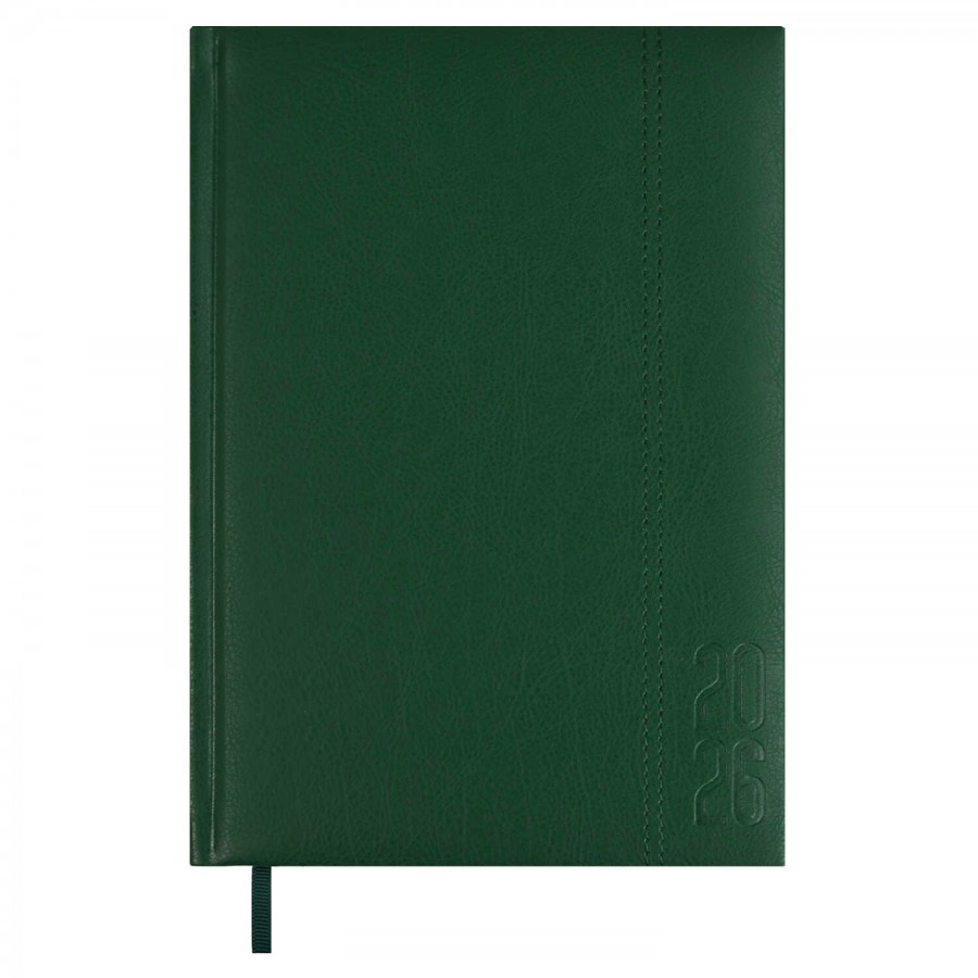 Ежедневник датированный 2026 ESCALADA, А5, 176 л., арт. 70228/ 15 НАППА ТЁМНО-ЗЕЛЁНЫЙ (кожзам: 146х211 мм, твёрдый переплёт с поролоном, материал обложки: искусственная кожа "Наппа"; декор: блинтовое тиснение, отделочная строчка; способ крепления блока: ниткошвейный; вн. блок: 176 л., белый офсет 70 г/м?, печать в одну краску (линия), справочный материал: есть; перфорация углов блока: нет; закладка/-и: одно ляссе; каптал: есть; форзац: без печати; персонализация возможна: да; индивидуальная упаковка: промостикер + ПЭТ-пакет)