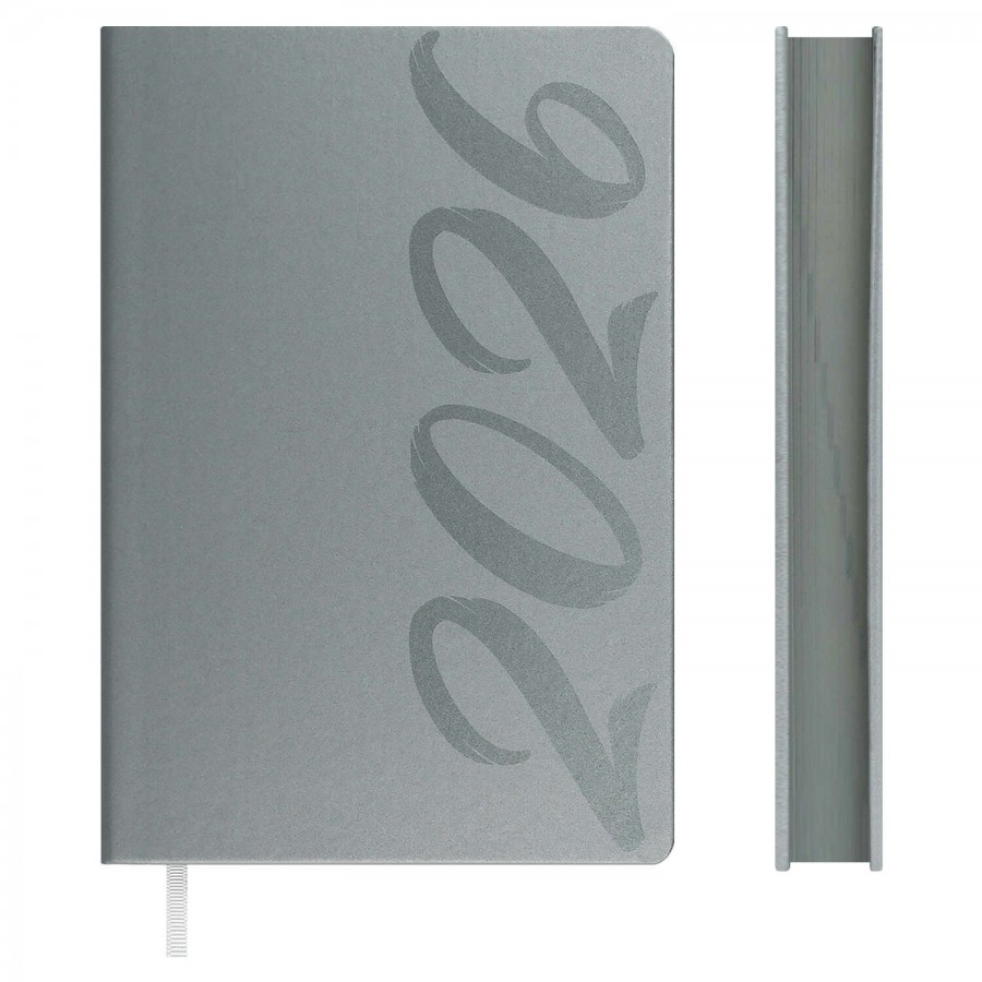 Ежедневник датированный 2026 ESCALADA, А5, 176 л., арт. 70234/ 15 СОФТ-ТАЧ СЕРЫЙ (кожзам: 146х211 мм, твёрдый переплёт, материал обложки: искусственная кожа "Софт-тач"; декор: выборочный УФ-лак; способ крепления блока: ниткошвейный; вн. блок: 176 л., кремовый офсет 70 г/м?, печать в две краски (клетка), справочный материал: есть; перфорация углов блока: нет; отделка среза: окрашивание пантоном; закладка/-и: одно ляссе; каптал: есть; форзац: печать пантоном; особенности: в блоке использованы мотивирующие высказывания из книги "Думай как миллиардер", помогающие сформировать правильное отношение к финансам, профессиональной деятельности, своим способностям и к жизни в целом; персонализация возможна: да; индивидуальная упаковка: промостикер + ПЭТ-пакет)