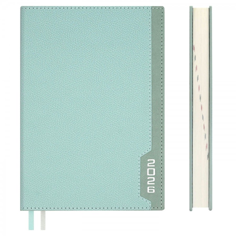 Ежедневник датированный 2026 ESCALADA, #ДУМАЙ КАК МИЛЛИАРДЕР, А5, 176 л., арт. 70237/ 15 ДЖУТ МЯТНЫЙ (кожзам: 146x211 мм, твёрдый переплёт, запаянный край, материал обложки: искусственная кожа "Джут"; декор: тиснение фольгой; способ крепления блока: ниткошвейный; вн. блок: 176 л., кремовый офсет 70 г/м?, печать в две краски (линия), справочный материал: есть; перфорация углов блока: нет; закладка/-и: два ляссе; каптал: есть; форзац: печать пантоном; особенности: в блоке использованы мотивирующие высказывания из книги "Думай как миллиардер", помогающие сформировать правильное отношение к финансам, профессиональной деятельности, своим способностям и к жизни в целом, комбинированные материалы; персонализация возможна: да; индивидуальная упаковка: промостикер + ПЭТ-пакет)