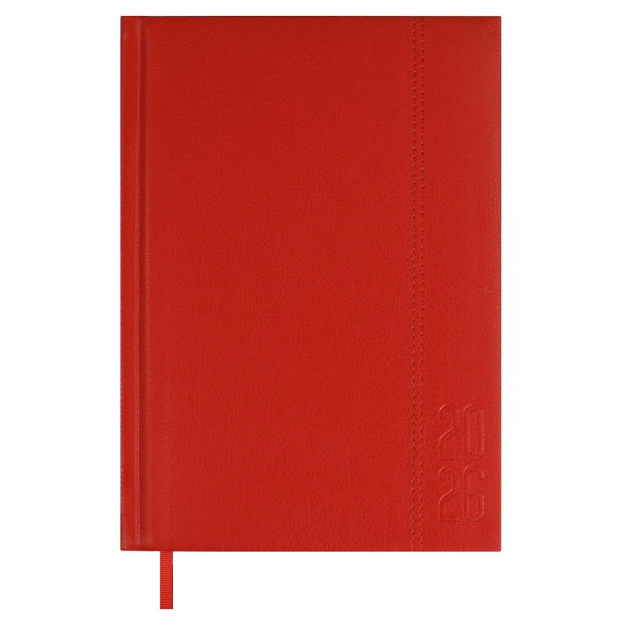 Ежедневник датированный 2026 ESCALADA, А5, 176 л., арт. 70227/ 15 НАППА КРАСНЫЙ (кожзам: 146х211 мм, твёрдый переплёт с поролоном, материал обложки: искусственная кожа "Наппа"; декор: блинтовое тиснение, отделочная строчка; способ крепления блока: ниткошвейный; вн. блок: 176 л., белый офсет 70 г/м?, печать в одну краску (линия), справочный материал: есть; перфорация углов блока: нет; закладка/-и: одно ляссе; каптал: есть; форзац: без печати; персонализация возможна: да; индивидуальная упаковка: промостикер + ПЭТ-пакет)