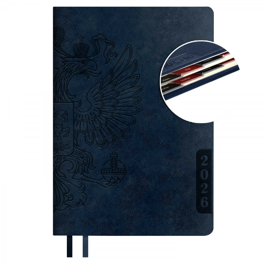 Ежедневник датированный 2026 ESCALADA, А5, 176 л., арт. 70247/ 15 НАППА СИНИЙ (кожзам: 146x211 мм, твёрдый переплёт, запаянный край, материал обложки: искусственная кожа "Наппа"; декор: блинтовое тиснение; способ крепления блока: ниткошвейный; вн. блок: 176 л., кремовый офсет 70 г/м?, печать в две краски (линия), справочный материал: есть; перфорация углов блока: есть; закладка/-и: два ляссе; каптал: есть; форзац: печать пантоном; особенности: вырубка блока по месяцам; персонализация возможна: да; индивидуальная упаковка: ПЭТ-пакет)