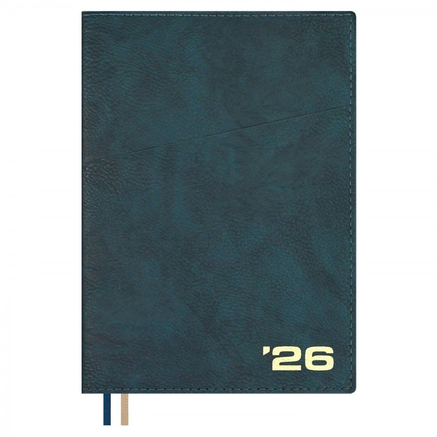 Ежедневник датированный 2026 ESCALADA, А5+, 176 л., арт. 70406/ 10 ШЕВРЕТ ЗЕЛЁНЫЙ (кожзам: 175x245 мм, запаянный край, интегральный переплёт, материал обложки: искусственная кожа "Шеврет"; декор: тиснение фольгой; способ крепления блока: ниткошвейный; вн. блок: 176 л., кремовый офсет 80 г/м?, печать в две краски (клетка), справочный материал: есть; перфорация углов блока: есть; закладка/-и: два ляссе; каптал: есть; форзац: печать пантоном; особенности: карман функциональный как часть обложки; персонализация возможна: да; индивидуальная упаковка: ПЭТ-пакет)