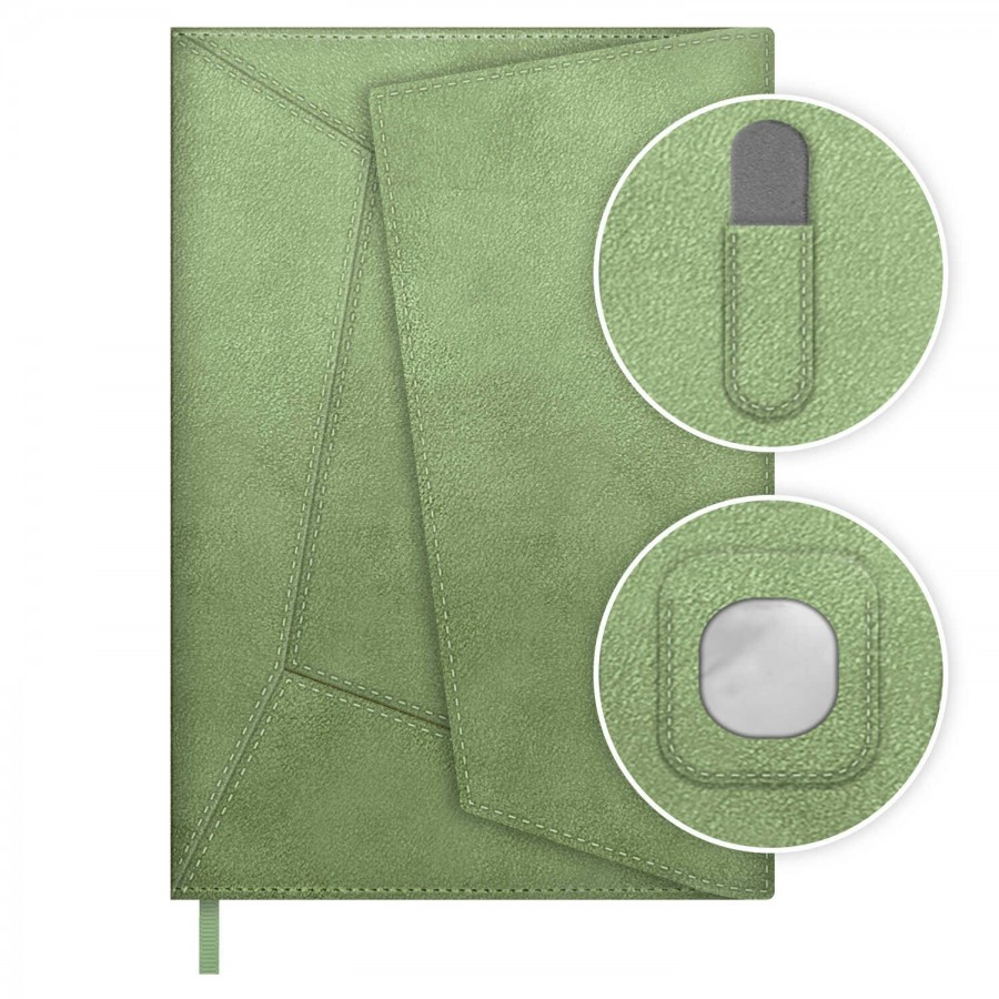 Ежедневник недатированный А5 146х211 120 листов, линия, твердая обложка, Escalada, кожзам Спилок металлик зеленый, ляссе, 70 г/м2 70606 Феникс 15/30