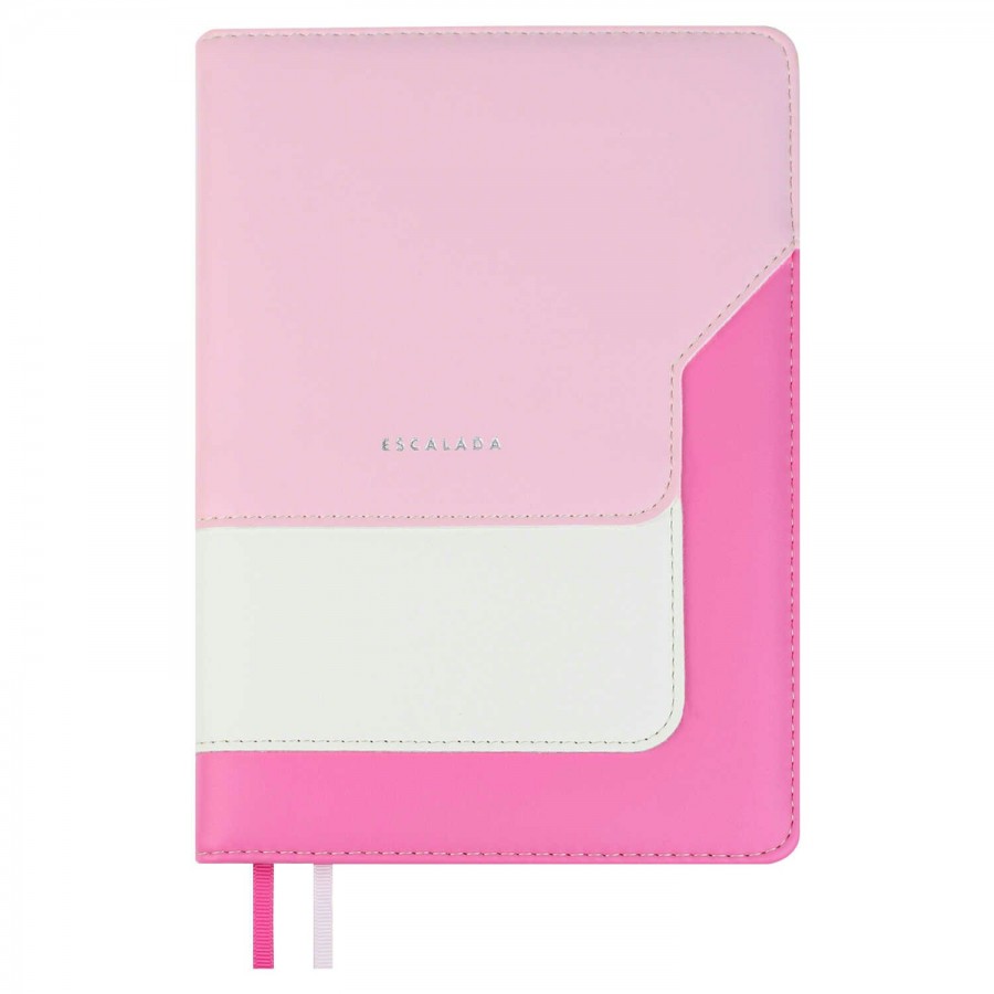 Ежедневник недатированный ESCALADA, А5, 160 л., арт. 70596/ 15 ЛАЙКА РОЗОВЫЙ (кожзам: 146х211 мм, твёрдый переплёт с поролоном, материал обложки: искусственная кожа "Лайка"; способ крепления блока: ниткошвейный; декор: отделочная строчка, тиснение фольгой; вн. блок: 160 л., кремовый офсет 70 г/м?, печать в одну краску (линия), справочный материал: есть; перфорация углов блока: нет; отделка среза: окрашивание пантоном; закладка/-и: два ляссе, каптал: есть; форзац: печать пантоном, тиснение фольгой, особенности: комбинированные материалы; персонализация возможна: да; индивидуальная упаковка: ПЭТ-пакет)