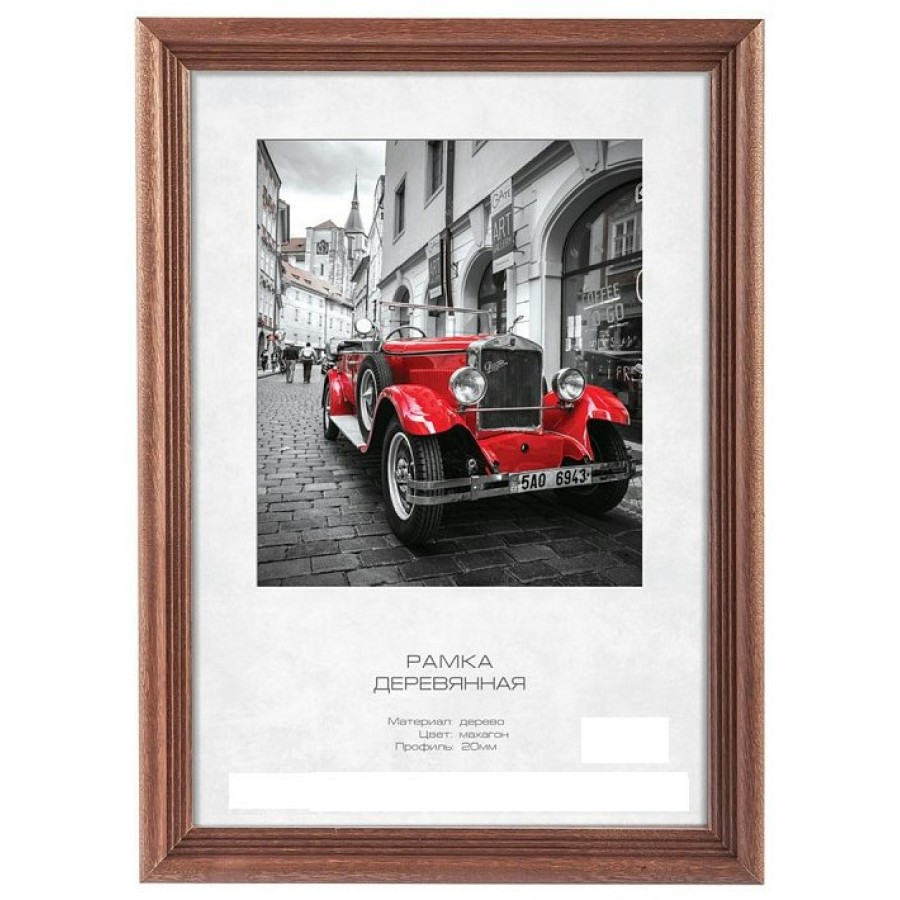 Фоторамка деревянная 21х30 сосна с20 махагон, вставка прозрачный пластик Б0053106 Image art