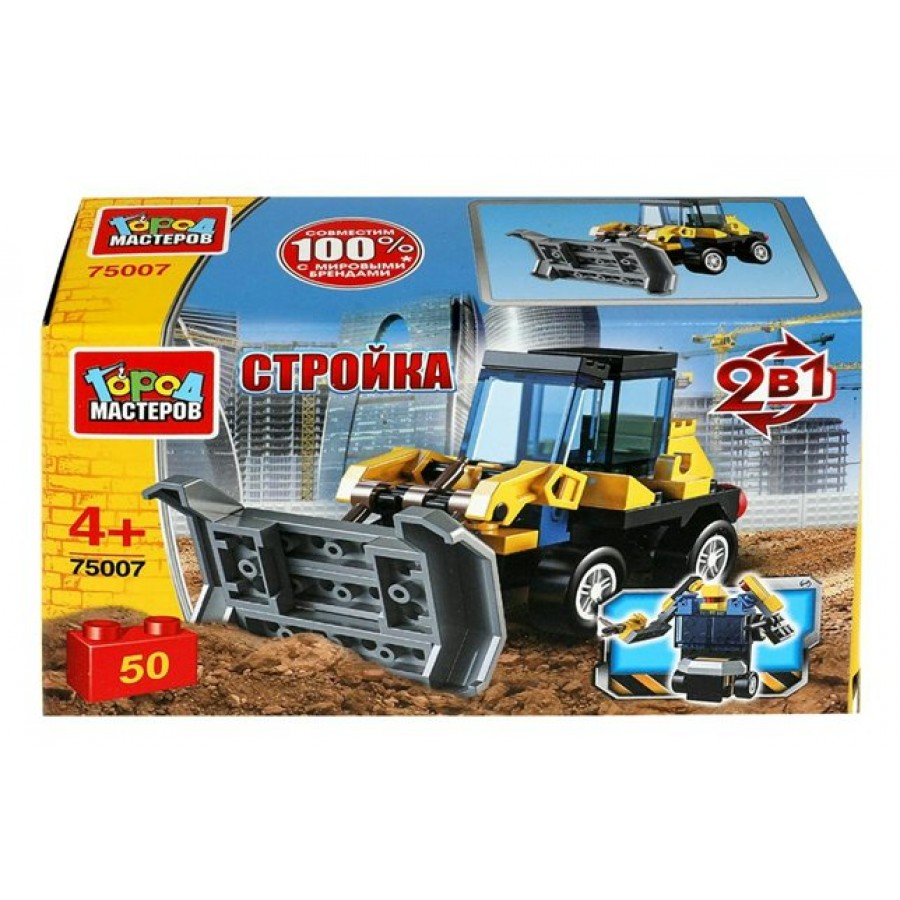ГородМастеров Игрушка Конструктор 2 в 1. Стройка. Бульдозер/50 дет 75007-JS Китай