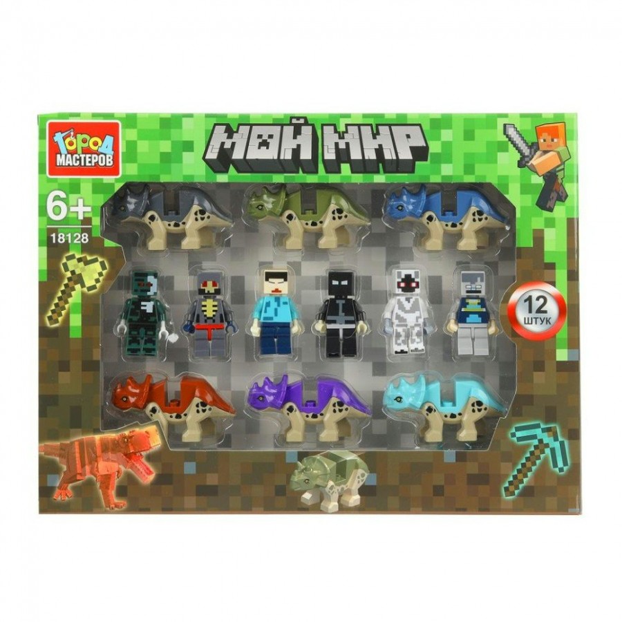 ГородМастеров Игрушка 12 Конструктор. Мой мир + динозавры. Фигурки 18128-ZH Китай