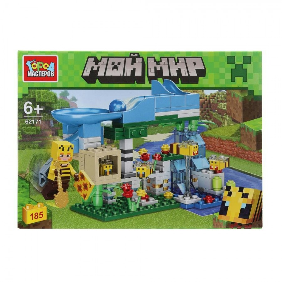 С помощью этого занимательного конструктора ребёнок может собрать красочную сцену в тематике популярной компьютерной игры. Наличие горки со стремительно скатывающимся по ней шариком вносит в игру с собранной моделью больше интерактивности. В серию входят разные виды наборов, соединив которые, можно создать собственный квадратный мир и расширить варианты игры.