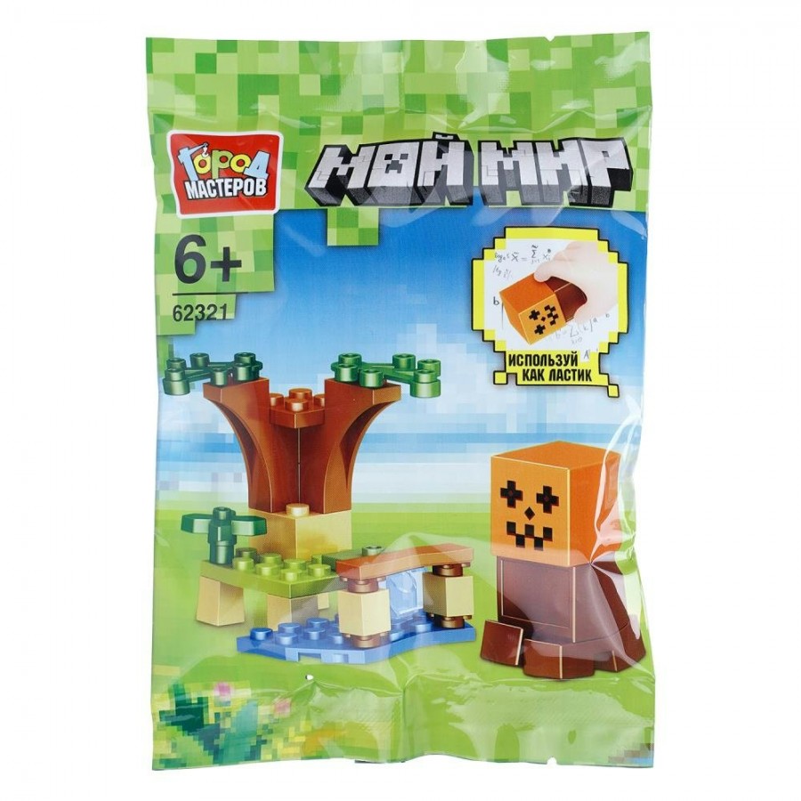 Занимательный конструктор погрузит ребёнка в атмосферу популярной компьютерной игры — с его помощью можно собрать яркую и красочную игровую сцену с узнаваемыми элементами и деталями. Особая фишка набора — оригинальная резиновая фигурка, которая выполняет сразу две функции: служит частью игровой композиции и может использоваться как ластик. Серия включает разные виды наборов: соединив их между собой, юный игрок сможет создать собственный квадратный мир и придумать множество новых игровых сценариев.