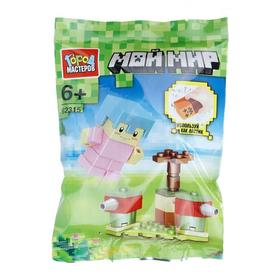 Занимательный конструктор погрузит ребёнка в атмосферу популярной компьютерной игры — с его помощью можно собрать яркую и красочную игровую сцену с узнаваемыми элементами и деталями. Особая фишка набора — оригинальная резиновая фигурка, которая выполняет сразу две функции: служит частью игровой композиции и может использоваться как ластик. Серия включает разные виды наборов: соединив их между собой, юный игрок сможет создать собственный квадратный мир и придумать множество новых игровых сценариев.