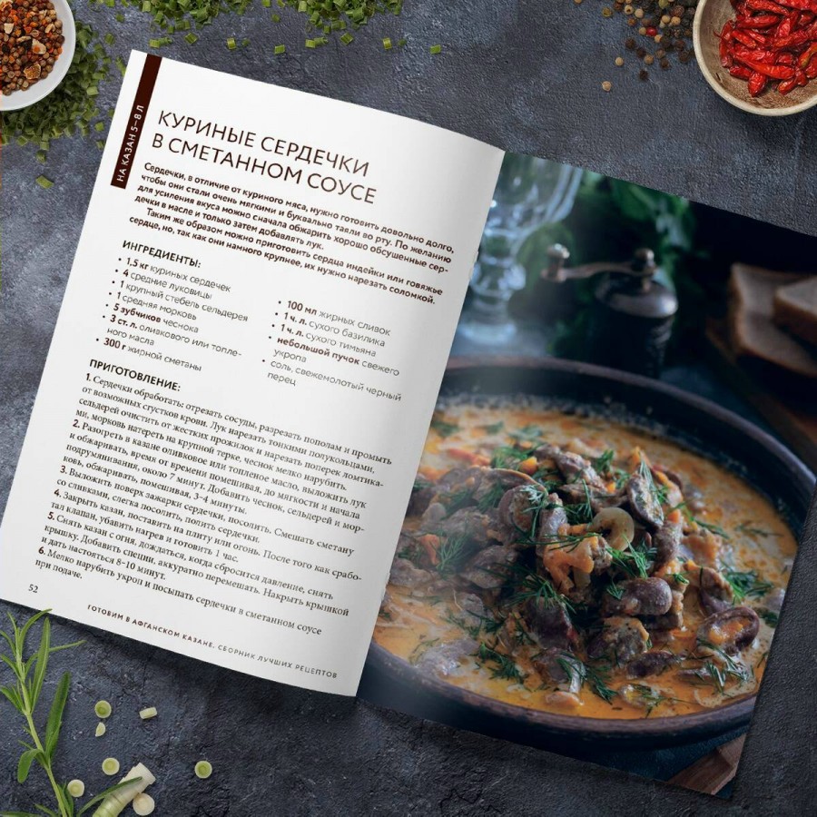 Удобный формат книги позволяет взять ее куда угодно без особых затрат места на нее. Попробуйте приготовить любое блюдо из книги в вашем афганском казане и можете быть уверены в том, что откроете для себя новый вкус даже самых устоявшихся блюд!