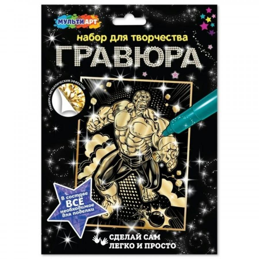 Гравюра-картина золотая 18х24см Зеленый монстр-герой SCRGOL18X24-HALC МультиАрт