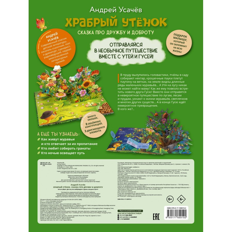 «Храбрый утёнок. Cказка про дружбу и доброту» — новинка в мире современной русской детской литературы. Увлекательная история в великолепном издании с объёмными картинками и окошками!